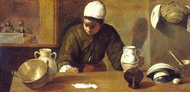 (1599-1600) con el título de “La sirvienta de cocina”.  En él se ve a una mujer fregando y