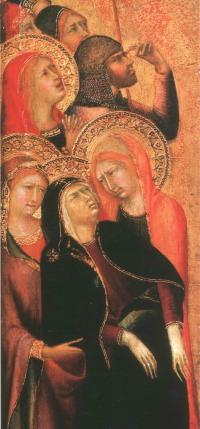 andere Frauen. Die Mutter wird vom Jünger gestützt, aber sie