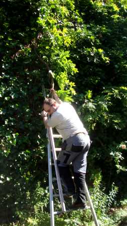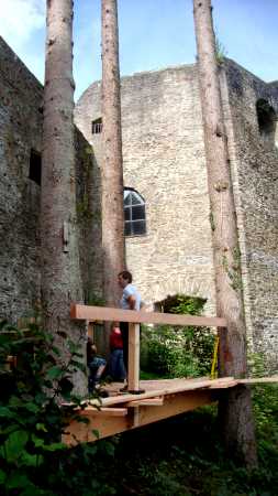 ![]() Heute kommen die Stufen zur Küche dran... ![]() und die Kapellentür wird schon mal eingehängt - wie neu! ![]() ![]() ...und bei der Kletterwand die Möglichkeit eröffnen, senkrecht nach oben zu steigen, oder auch hinüberzuwechseln in den Klettergarten zwischen den alten Fichten. Dafür ist inzwischen das Podest nahezu fertig. |