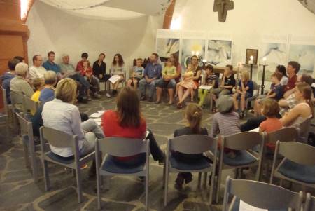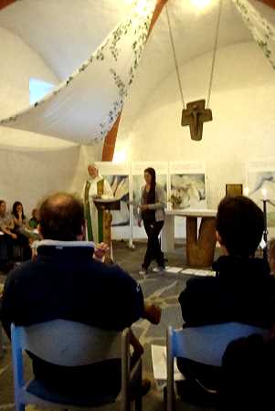 ![]() Das Wetter meint's gut mit uns: Nach dem Morgenlob Warten auf's Frühstück in strahlender Sonne. Auch am Sonntag wird selbstverständlich an den Projekten weitergearbeitet - schließlich geht's um ein 'Freizeitvergnügen', Bei den folgenden Bildern fällt auf, wieviel freude auch Kinder daran haben, konkrete Projekte mitgestalten zu können: ![]() Z.B. wenn's hier um die Vorbereitung der Fundamente geht für die große Wippe, Darüber hinaus... ![]() ...wird Zement geschleppt, ![]() ...Sicherungselemente auf der Sonnenerasse eingeetzt, ![]() ...und letzte Hand angelegt an die 'Große Wippe'. Selbstverständlich kommt die Energieversorgung nicht zu kurz: ![]() Warten auf's Mittagessen... Zum 'offiziellen' Abschluß des Sonntags dann eine festlich frohe Eucharistiefeier zum Glaubensabenteuer von Abraham und Sara in der Burgkapelle mit Ora-eigener Musik und einer Dialogpredigt: ![]() |