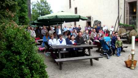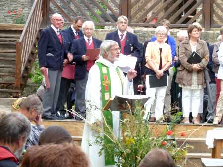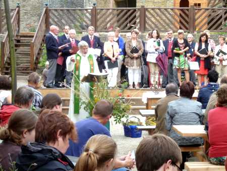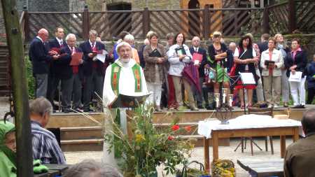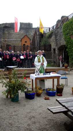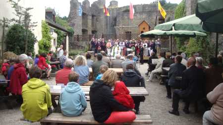 mit Musik![]() ![]() Die Predigt des Gottesdienstes hier zum Nachlesen. ![]() Eucharistiefeier. Zum Fest Mariä Himmelfahrt, das schon am Donnerstag gefeiert wurde, haben frauen aus Neuerburg Kräuter gesammelt, die am Ende des Gottesdienstes gesegnet und dann auch mit nach Hause genommen wurden. Nach dem Gottesdienst ging das Fest weiter mit Chormusik, ![]() mit Führungen durch die Burg und deren 'neue' Attraktionen, sowie mit gemütlichem Zusammensein bei Musik, mit Getränken, zu Mittag Erbsensuppe und Würstchen aus der Burgküche und schließlich Kaffee und Kurchen. Ein gelungener Ausklang - bei einem Wetter, das sich allen Befürchtungen zum Trotz letztlich ganz manierlich hielt. Nachtrag Drei Fotos der Abschlußmesse von Klaus Kobold: ![]() ![]() |