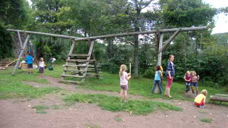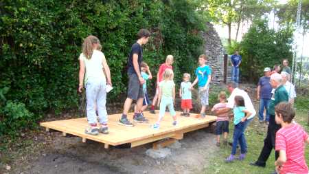 ![]() oder an die erste Seilbrücke des Klettergartens. Es werden wohl bis heute am späten Abend noch zwei weitere Brücken fertig: ![]() ![]() Einige ausgeswählte Bilder vom Rundgang: ![]() Fenster aufgearbeitet, ![]() Vorhänge für den Rittersaal genäht und aufgehängt, ![]() ein stabiles Podest für Baumkletterer, ![]() ![]() unten auf dem Spielplatz die neue Wippe: Gar nicht so einfach, die in die Waage zu bringen, und selbstverständlich nicht zu vergessen die Zielwand für's Bogenschießen und die Torwand als Beiträge Neuerburger Bürger zu Ora & Labora. |