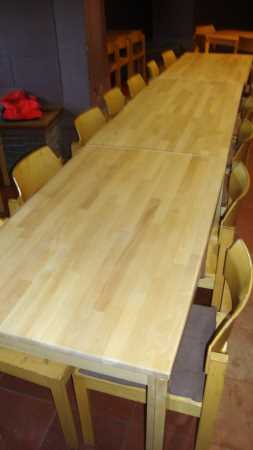 Tische im Speisesaal glänzen so, daß man sich fast drin