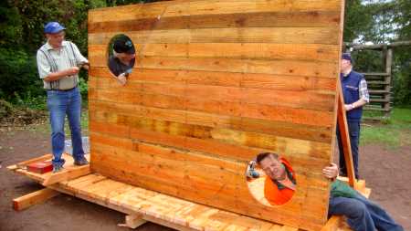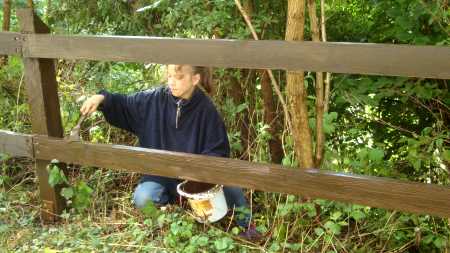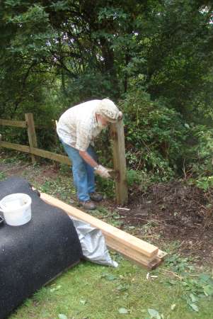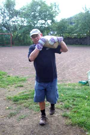 kann.![]() z.B. im Schlafsaal 5, ![]() Eine neue Sandsteinstufe wird verlegt ![]() Ob's nun 'Unkraut' ist oder nicht, es muß entsorgt werden. ![]() Unsere Neuerburger Freunde sind zu Recht stolz auf ihren Beitrag: Auf diese Zielwand zum Bogenschießen und nicht weniger auf die Torwand. Beides wurde heute im Boden verankert; beides bekommt natürlich auch noch einen Anstrich. ![]() ![]() beim Anstreichen dieses Zaunes... ![]() oder einfach beim vergnüglichen Zuschauen, wenn andere arbeiten. |