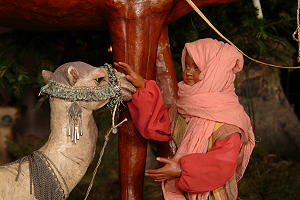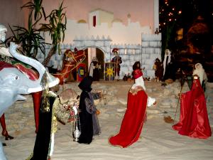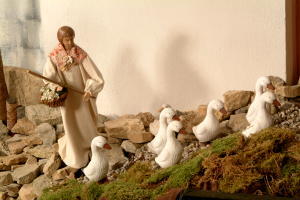 der Völker. Die Krippe In traditioneller Weise stellt die Weihnachtskrippe von Sankt Michael in Göttingen das Geschehen dar. Allerdings kommen nicht nur Hirten zum Stall von Bethlehem, um zu sehen, "was dort geschehen ist", sondern ebenso Hirtinnen, sowie Hirtenmädchen und Hirtenjungen. Das Göttinger Gänseliesel, die Symbolfigur der Stadt, vertritt darüber hinaus die Bürgerinnen und Bürger von Göttingen und überhaupt die Menschen unserer Zeit. Außer Ochs und Esel, sowie den Schafen und Gänsen finden sich an der Krippe von Sankt Michael unzählige kleine und große Tiere, die alle zusammen die ganze Schöpfung vertreten, von der es im Römerbrief des Apostels Paulus heißt, sie sei erfüllt von der Sehnsucht nach "Erlösung". Während sich in Bethlehem die Geburt Jesu ereignet, sind bereits die Weisen ("Könige") aus dem Morgenland auf dem Weg nach Jerusalem, der Stadt Gottes, und zum König Herodes. Sie kommen mit großem Gefolge - Menschen aller Rassen und Generationen. Mit ihnen kommt auch die "Königin von Saba", die sich bereits zur Zeit des Königs Salomo auf den Weg nach Jerusalem machte, die in dieser Krippe jedoch die Menschen der Vergangenheit vertritt, für die Gott so gut Mensch geworden ist wie für die Menschen der Zeit Jesu und für uns. Außerdem