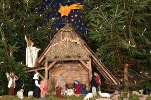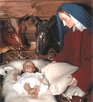 Neues Testament: Lk. 2, 1 - 20:  In jenen Tagen erließ Kaiser Augustus den Befehl, alle Bewohner des Reiches in Steuerlisten einzutragen. Dies geschah zum erstenmal; damals war Quirinius Statthalter von Syrien. Da ging jeder in seine Stadt, um sich eintragen zu lassen. So zog auch Josef von der Stadt Nazaret in Galiläa hinauf nach Judäa in die Stadt Davids, die Betlehem heißt; denn er war aus dem Haus und Geschlecht Davids. Er wollte sich eintragen lassen mit Maria, seiner Verlobten, die ein Kind erwartete. Als sie dort waren, kam für Maria die Zeit ihrer Niederkunft, und sie gebar ihren Sohn, den Erstgeborenen. Sie wickelte ihn in Windeln und legte ihn in eine Krippe, weil in der Herberge kein Platz für sie war. In jener Gegend lagerten Hirten auf