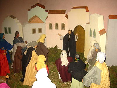 Delante de la puerta de la ciudad Pedro predica a la