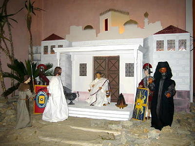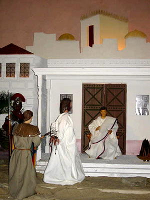 des Pilatus zu sehen. Pilatus steht noch vor dem Palast am Ort des