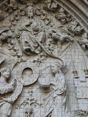 indicó María Teresa Sierra (Madrid): Una representación de la Anunciación de la Cartuja de Miraflores de Burgos, siglo XV (Jahrhundert 15.): Aquí un rayo de luz desde Dios alcanza la cabeza de María. En este rayo de luz se desliza hacia abajo sobre el vientre el Niño. También el “tubo” del relieve de Würzburg se interpretó por algunos autores como un rayo de luz. |