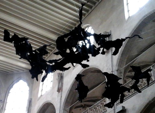 | Hintergrund dieser Anregungen ist eine Installation des russisch-ukrainischen Künstlers Aljoscha, die während der Passionszeit den Kirchenraum von Sankt Peter in Köln prägt. Die Komposition schwebender Gebilde aus Acrylglas und Farbpigmenten können an dunkle Wolken oder auch an bedrohlich hereinbrechende Dämonen erinnern. In der Osternacht werden sich diese bedrückenden Gestalten verwandeln in ein farbig-lichtes und leichtes Gewölk.  Zu Beginn des Gottesdienstes gibt es eine Zeit der Stille, um die künstlerische Installation zu betrachten und in Ruhe auf sich wirken zu lassen. Teilnehmer*innen haben anschließend die Möglichkeit - wenn sie möchten - ihre persönlichen Eindrücke und Assoziationen kurz zu schildern. Daran knüpfen während des Wortgottesdienstes die folgenden Impulse an, die versuchen, einen Bezug herzustellen zur beginnenden Passionszeit, zu Schriftlesungen dieser Zeit und zumal dieses Sonntags. |
