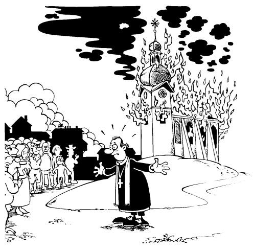 |  Feuer unter’m Dach der Kirche! Feueralarm! Wer holt die Feuerwehr? Hilflos steht der Pfarrer vor seiner brennenden Kirche. Ratlos und wie vor den Kopf geschlagen - die ganze Gemeinde. Ob da auch nur einer sich an das Wort Jesu erinnert: “Feuer auf die Erde zu werfen, bin ich gekommen; und wie sehr wünschte ich, es würde schon brennen!” (Lk. 12, 49) Jetzt brennt es also: • Skandale erschüttern die Kirche bis auf die Grundfesten. • Selbst auf Bischöfe ist kein Verlaß mehr. • In Scharen verlassen Katholiken ihre Kirche. Feuer unter’m Dach der Kirche! Spontan erleben wir dies Feuer als Brandkatastrophe, als ein zerstörerisches Ereignis - und rufen nach der Feuerwehr. Vielleicht aber wäre es sinnvoller, einen Blick in die Bibel zu werfen und sich erinnern zu lassen: Gott selbst erscheint im Feuer. • Mose hat es erlebt, als ihn der Herr berief: Als ein Engel erschien Er ihm im Feuer des brennenden Dornbusches. (cf. Apg.7, 30) • Vom Bundesschluß auf dem Sinai wird berichtet: “Der ganze Sinai war in Rauch gehüllt, denn der Herr war im Feuer auf ihn herabgestiegen. Der Rauch stieg vom Berg auf wie Rauch aus einem Schmelzofen. Der ganze Berg bebte gewaltig.” (Ex. 19, 18) Johannes der Täufer weist auf Jesus hin und sagt von Ihm: “Er wird euch mit dem Heiligen Geist und mit Feuer taufen.” (Mt. 3, 11) Und heute feiern wir “mit Heiligen Geist und mit Feuer” Getaufte Gottes Erscheinen im Feuer und im Sturm: “Da kam plötzlich vom Himmel her ein Brausen, wie wenn ein heftiger Sturm daherfährt, und erfüllte das ganze Haus, in dem sie waren. Und es erschienen ihnen Zungen wie von Feuer...”. (Apg. 2, 2 f) Gott selbst zündelt in Seiner Kirche! Mehr noch: Er pustet kräftig hinein in die kleinen Flammen und facht die Feuerzungen an durch einen brausenden Sturm. An Pfingsten erfüllt sich also der sehnliche Wunsch Jesu: “Feuer auf die Erde zu werfen, bin ich gekommen; und wie sehr wünschte ich, es würde schon brennen!” Wir singen heute und beten: “Der Geist des Herrn erfüllt das All mit Sturm und Feuersgluten... Der Geist des Herrn durchweht die Welt, gewaltig und unbändig; wohin sein Feueratem fällt, wird Gottes Reich lebendig.” Wir haben jedoch sehr “zahme” Vorstellungen vom Feuer des Gottesgeistes, und daran möge Er sich doch bitte halten: • Es sollte ein kleines, harmloses und möglichst stimmungsvolles Feuerchen sein. • Es sollte uns wärmen, statt uns zu verängstigen. • Es sollte ein Feuer zärtlicher Liebe sein und ja nicht ein Feuer zorniger und aufrüttelnder Liebe. Wenn Gottes Heiliger Geist an Pfingsten jedoch im Bild des Feuers vorgestellt wird, dann sollten wir vor allem zur Kenntnis nehmen: Feuer reinigt, Feuer verändert, Feuer schafft Neues. Zunächst einmal bewirkt der Pfingstgeist das alles für uns ganz persönlich - wenn wir uns denn auf Ihn einlassen, anstatt nur ins Grüne zu fahren: • “Reinigung” durch das Feuer des Geistes mag schmerzhaft sein; aber sie befreit uns von allen Schlacken und hinderlichen Altlasten. • Mit jeder “Veränderung” und erst recht mit Veränderung im Sinne des Evangeliums tun wir uns schwer; aber sie würde uns erst wirklich zu glaubwürdigen, überzeugenden, liebenden und frohen Menschen machen, • zu “neuen” Menschen also, die den “alten Adam” hinter sich lassen und sich ausrichten auf eine lohnende Zukunft, auf Gottes Zukunft. Aber auch uns gemeinsam und die Kirche als Ganze muß der Feuersturm des Pfingstgeistes packen: • Da kommen Machtstrukturen der Kirche in den Blick. • Da wird das Priesterbild in Frage gestellt. • Da geht’s um die “Verwaltung” (sic!) der Sakramente. • Da gilt es, unter mancherlei Rücksicht den Ballast der Jahrhunderte abzuwerfen. • Da würde jene Freude durchbrechen, die wir als Verkünder der frohmachenden Botschaft der Welt und jedem einzelnen Menschen schenken dürfen. • Da kommt eine rundum erneuerte Kirche zum Vorschein, deren Faszination anziehend und einladend wirkt. Halten Sie die Augen offen und schauen Sie sich “mit guten Augen” um! Sie werden jetzt schon viel Ermutigendes in dieser Kirche entdecken. Sie werden feststellen: Gottes Geist ist schon am Werk! Und denken Sie daran: Wir alle sind Kirche! Und: Es ist noch viel zu tun! Vergessen wir die Feuerwehr! Löschen wir den Geist nicht aus! Er muß sich mit Feuer und Sturm ausbreiten können. Beten wir aus gläubiger Überzeugung: “Sende aus deinen Geist, und das Antlitz der Erde wird neu.” Und tragen wir mit hoffnungsvoller Energie das Unsere dazu bei! Amen. |