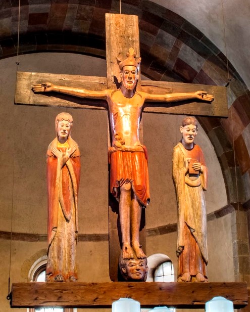| Gerade in dieser Zeit vor Ostern steht das Symbol des Kreuzes ganz im Vordergrund. Christen erinnern sich des Wortes Jesu: „Wer mein Jünger sein will, der verleugne sich selbst, nehme sein Kreuz auf sich und folge mir nach.“ (Mt. 16. 24) Dabei wird dann häufig jede Last, die das Leben uns auferlegt, als Kreuz oder gar als drückendes Kreuz empfunden. In diesem Zusammenhang gerät vielfach in Vergessenheit, daß Jesus auch gesagt hat: „Nehmt mein Joch auf euch und lernt von mir; denn ich bin gütig und von Herzen demütig; so werdet ihr Ruhe finden für eure Seele. Denn mein Joch drückt nicht, und meine Last ist leicht.“ (Mt. 1, 29f) Nicht selten empfinden Christen auch die „Zehn Gebote“ Gottes und überhaupt die Herausforderung christlicher Moral als eine von Gott und von der Kirche auferlegte Last - als ein Kreuz. Bei genauerem Hinsehen jedoch würden wir sehr bald entdecken, daß Gottes Gebote und die Weisungen Jesu, deren Kern das Liebesgebot ist, letztlich dem Leben dienen und einem menschenwürdigen Miteinander. Allerdings trifft das nicht unbedingt auf all das zu, was Menschen und auch die Kirche aus Gottes Geboten herausgelesen und auch hinein interpretiert haben. Eine sehr nachdenklich stimmende Karikatur zeigt Mose, wie er leichtfüßig mit den beiden Gesetzestafeln vom Gottesberg Sinai herabkommt. Ihm folgt jedoch eine lange Karawane von Lastenträgern, die Massen von dicken Büchern mit all den Paragraphen und Ausführungsbestimmungen hinter ihm her schleppen - Ausführungsbestimmungen von Theologen und Juristen, von Menschen halt. Überhaupt wäre es sinnvoll und hilfreich, darüber nachzudenken, wie oft wir Menschen uns gegenseitig das „Kreuz“ schwerer Lasten aufbürden. Machen wir dafür nicht leichtfertig „das Schicksal“ oder gar Gott verantwortlich! Und vergessen wir nicht, von uns selbst Rechenschaft zu fordern für all die Lasten, die wir anderen zumuten! Betrachten wir nun auf diesem Hintergrund das Kreuz Jesu Christi. Am Ölberg betete Er: „Vater, wenn du willst, nimm diesen Kelch von mir! Aber nicht mein, sondern dein Wille soll geschehen. Da erschien ihm ein Engel vom Himmel und gab ihm (neue) Kraft. Und er betete in seiner Angst noch inständiger, und sein Schweiß war wie Blut, das auf die Erde tropfte.“ (Lk. 22,42ff) Im Zweiten Hochgebet heißt es ausdrücklich: Er unterwarf sich aus freiem Willen dem Leiden. Er hätte sich dem entziehen können! Möglichkeiten gab es genug! Aber damit hätte Er Seine Botschaft vom Reich Gottes verraten und den Feinden dieser frohmachenden Botschaft das Feld überlassen. Er hat um dieser Botschaft willen und damit um unseretwillen nicht nur das Kreuz auf sich genommen, sondern sogar das Empfinden tiefster Gott-Verlassenheit: „Mein Gott, mein Gott! Warum hast du mich verlassen?“ (Mt. 27, 46) Dennoch sind dann Seine letzten, vertrauensvollen Worte: „Vater, in deine Hände lege ich meinen Geist.“ (Lk. 23, 46) Im Vertrauen auf den Gott des Lebens, auf Seinen Vater stirbt Er am Kreuz. Und dieses Vertrauen findet seine Bestätigung am Ostermorgen, am Morgen der Auferstehung in die Fülle des lebendigen Gottes! Das Pestkreuz in Sankt Georg Köln (14. Jahrh.) zeigt ganz und gar ungeschminkt das erschütternde Leiden Jesu; aber zugleich vermittelt dieses Kreuz Trost und Hoffnung in dieser von Leid und Tod beherrschten Pest-Epidemie. Nur von Ostern her kann dieses Pestkreuz ein Trost sein und selbst in dieser schlimmen Zeit Vertrauen schenken.  Ursprünglicher als die gotischen Kreuze, die das Leiden Jesu betonen, sind daher auch die Triumph-Kreuze der romanischen Zeit, die ganz und gar von Ostern her auf das Kreuz Jesu Christi blicken. Sie zeigen den österlichen Sieger über Leid und Tod. Ein solches Kreuz (1067) hängt übrigens ebenfalls in Sankt Georg! Das Bild zeigt jedoch Christus als den „Rex triumphans“, als triumphierenden König mit der Königskrone (um 1250) in der Stiftskirche zu Innichen (Südtirol).  Gerade in der aktuellen „Corona-Fastenzeit“, in der es, wie so oft, um das „Licht am Ende des Tunnels“ geht, möchte ich Ihnen vor allem diese Darstellung des Gekreuzigten als Begleiter durch die vor uns liegende Karwoche ans Herz legen. Wir befinden uns aktuell und eigentlich zu allen Zeiten auf dem Weg nach Ostern! Dazu paßt abschließend noch ein weiteres österliches Symbol: In einer Kölner Gemeinde wurden an diesem Aschermittwoch anstelle der Asche keimende Blumenzwiebel verschenkt: Zeichen österlicher Hoffnung auf den Sieg des Lebens! Amen. |